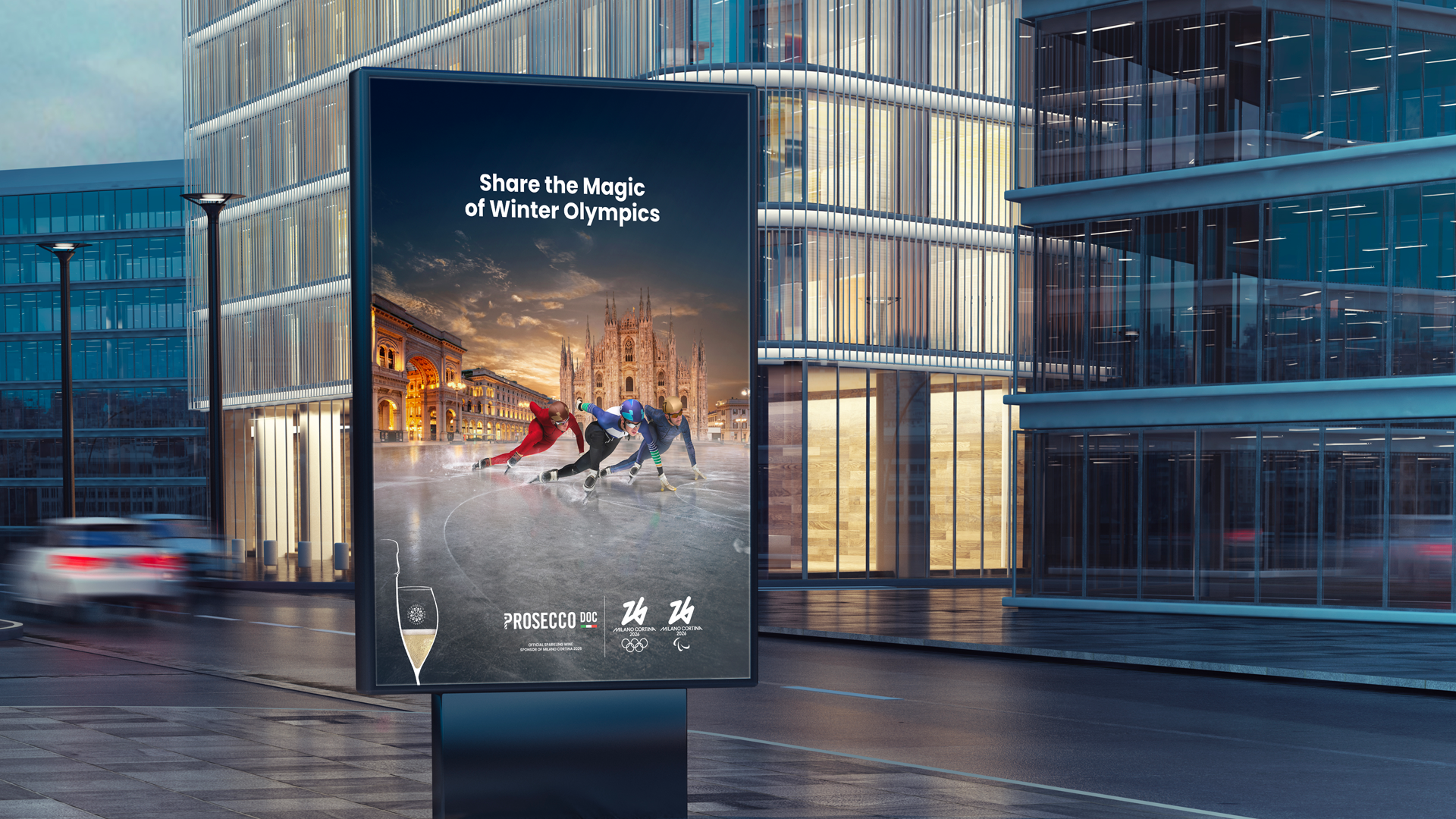 Share the Magic of Winter Olympics. CONSORZIO PROSECCO DOC – CAMPAIGN 2025 – 2026 Communication Strategy – Creative Direction – TV Commercial – HHO – Radio – Web & Social Media – Digital Campaign